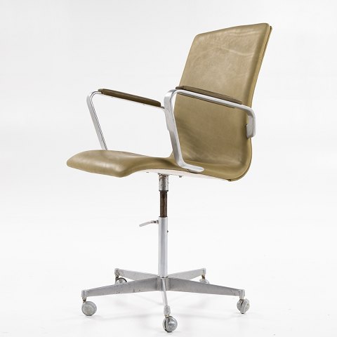 AJ 3291 - Reupholstered 'Oxford' office chair in new green brushed aniline leather (Dunes, colour: Racing Green).