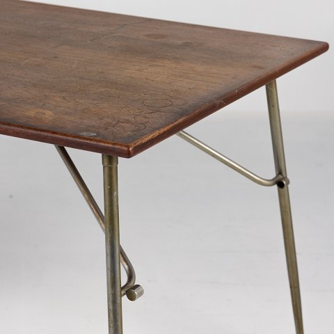 SM 202 - Skrivebord i teak med stel af stål og skuffekassette.