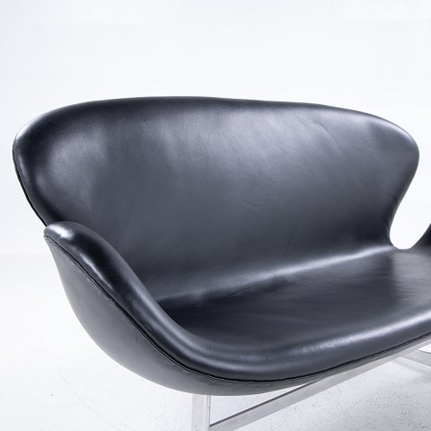 AJ 3321 - 'Svanesofa' i sort læder m. stel i stål.