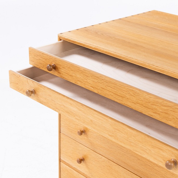 Tegningsskab i olieret egetræ med otte skuffer. Mærket fra producent.