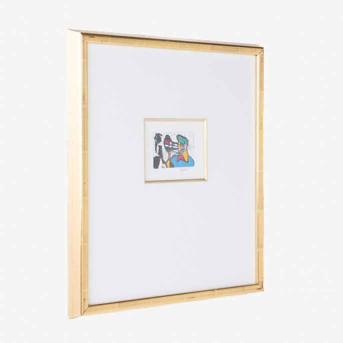 Signed etching in gold frame and passepartout with incorporated smaller frame. 47/50.