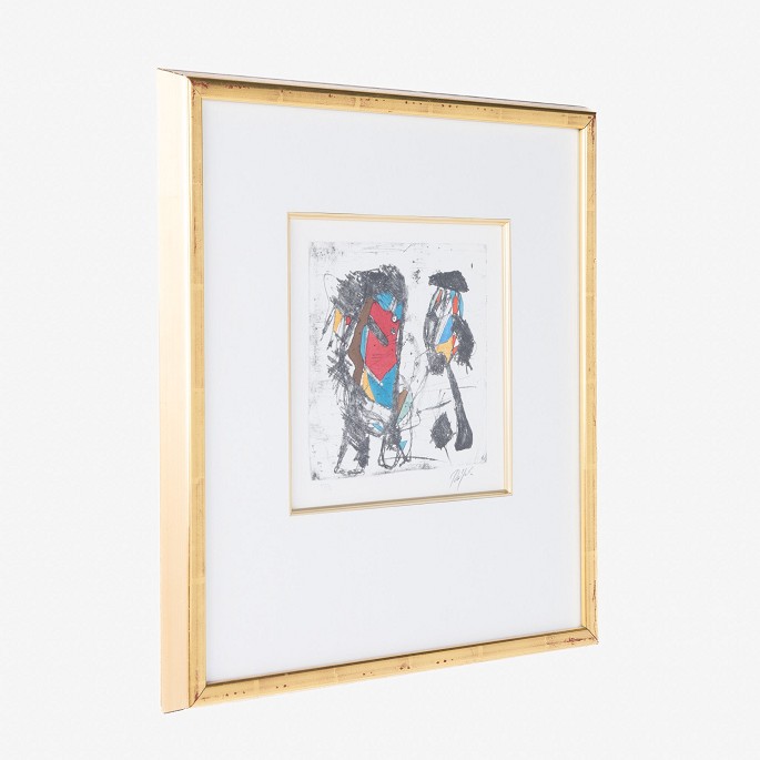 Signed etching in gold frame and passepartout with incorporated smaller frame. 47/50.