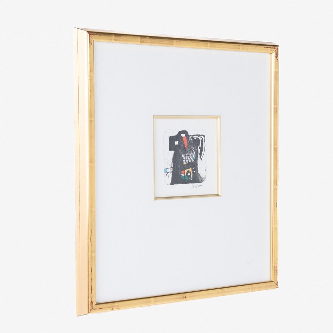 Signed etching in gold frame and passepartout with incorporated smaller frame. 47/50.