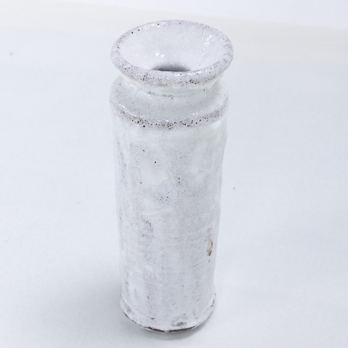 Cylinderformet vase i dekoreret stentøj med lys glasur. Stemplet.