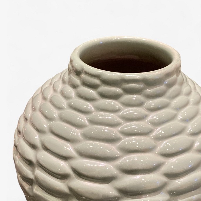 Vase i terakotta med grøn glasur. Formgivet i 1951. Stemplet fra producent.