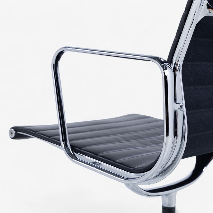 Model EA 107 - Office chair in black leather and chrome-plated steel.