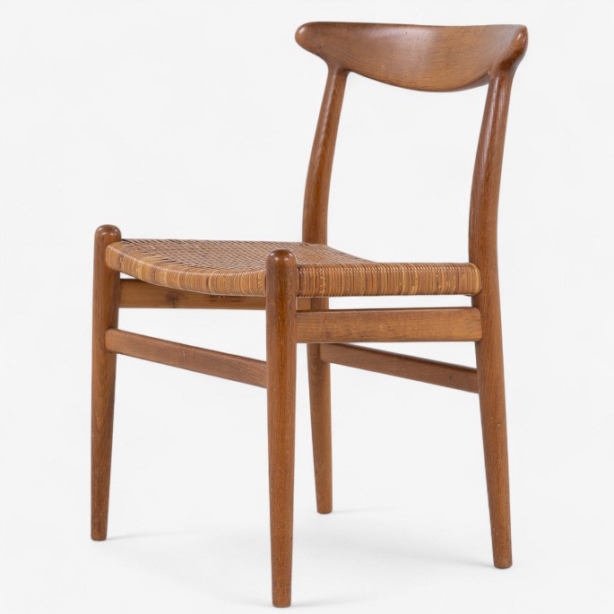 W2 - Spisestol i patineret eg med sæde i sjeneflet. Stemplet fra producent.