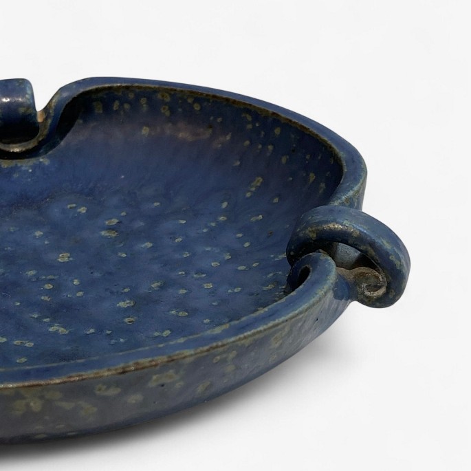 Organisk formet fad i stentøj med blå glasur (model 206). Signeret.