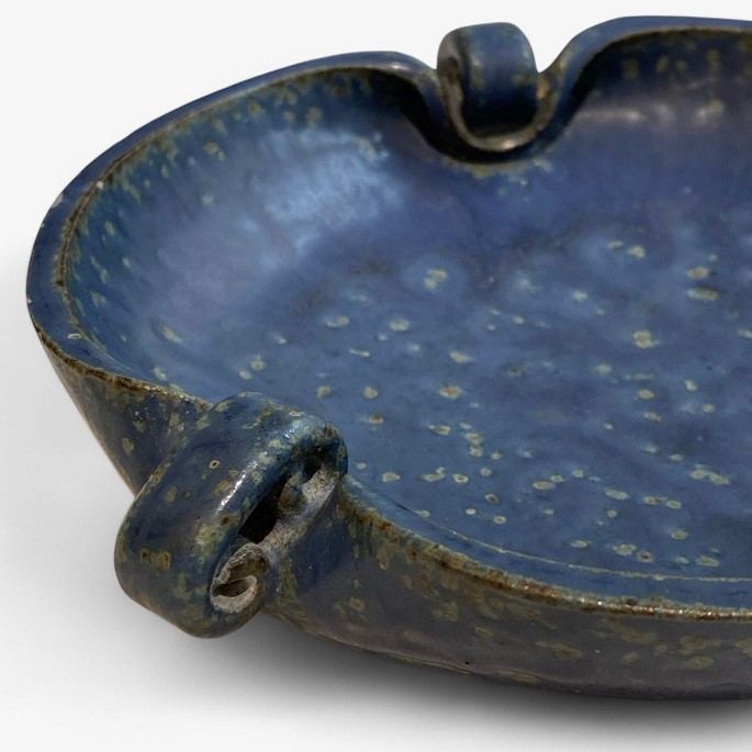 Organisk formet fad i stentøj med blå glasur (model 206). Signeret.