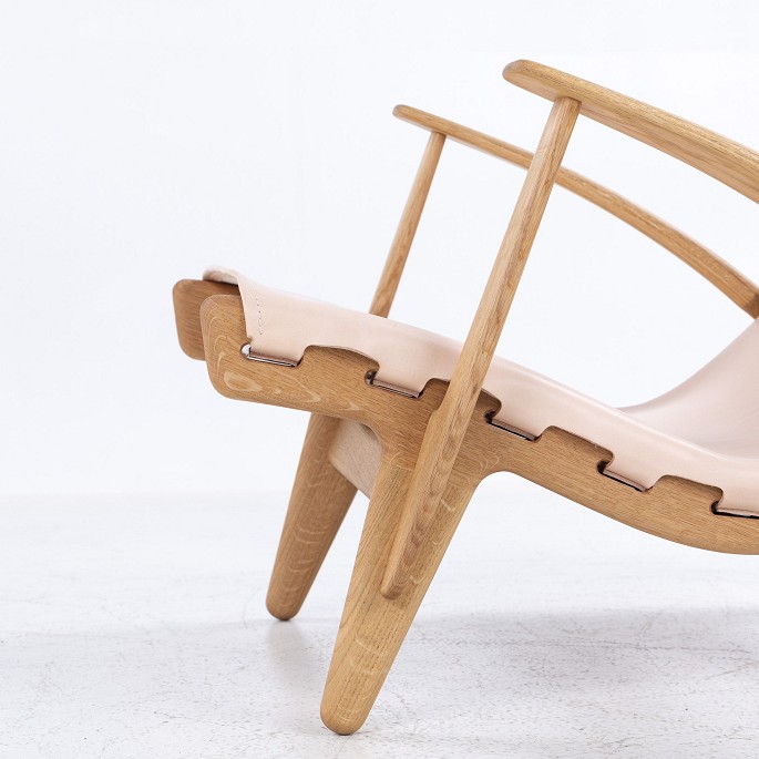 'Kongestolen'-lænestol i olieret eg og natur kernelæder.