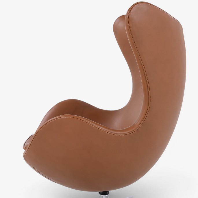 AJ 3316 - Nybetrukket 'Ægget'-lænestol i Elegance-anilinlæder (farve: Walnut) på gammel fod.