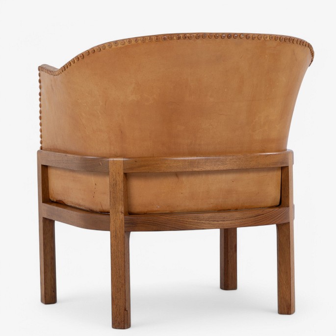 MK 51 - 'Fireplace Chair' in mahogany og patinated natural leather. Designed in 1936. Labelled from manufacturer.