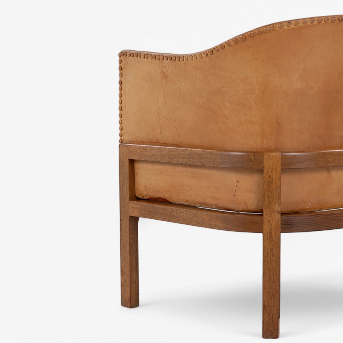 MK 51 - 'Fireplace Chair' in mahogany og patinated natural leather. Designed in 1936. Labelled from manufacturer.