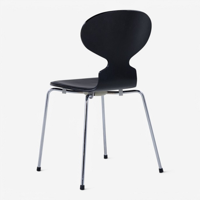 AJ 3100 - Front-upholstered 'Ant Chair' in black 'Vachetta' leather.