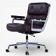 ES-104 - Kontorstol i mørkebrunt læder m. armlæn og stel i stål m. højdejustering. Mærket fra producent.