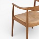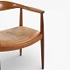 JH 503 - 'The Chair'-armstol i mahogni med sæde i patineret naturlæder. Mærket fra producent.