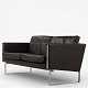 CH 102 - 2-seater sofa in dark brown, patinated semi-aniline leather with steel frame. Manufacturer's mark.