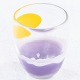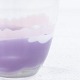 Glasvase m. dekorationer i lilla og gule farver.