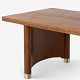 Large 'Art Deco' dining table/desk in patinated oak with curved column legs and brass shoes. From the 1930s.