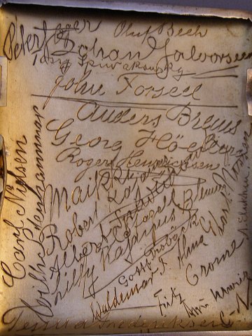 Usædvanligt Cigaretetui i metal m.initialerne AL og indvendig autografer fra tiden omkring 1920 bl.a.