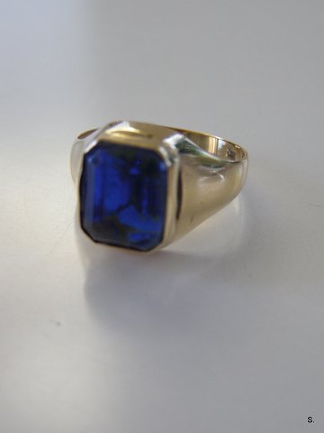 Ring i guld med blå sten/Safir sign. HH. 585 D:2 cm. Emne nummer: 10980
