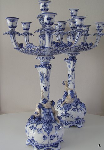 Royal Copenhagen 1006 1 Par Musselmalet helblonde Kandelabre Arnold Krog H:54cm. Emne nummer: 11099