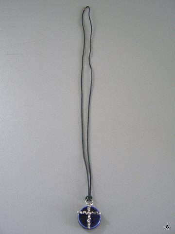 Sølvkors på blå Porcelæn H: 3 cm.