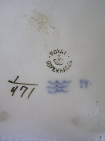 RC. 1/471 Musselmalet Riflet Æggekumme til 6 æggebægre 1. sort. H: 8,5 cm. D: 17 cm. Emne nummer: 11323