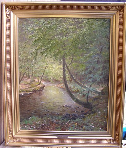 SOLGT Åløb gennem forårs skov 53*42 cm. med ramme 64*53 cm.
