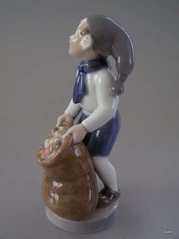 RC. 4534 December, Dreng med julegavesæk 1. sort. H: 17 cm. Emne nummer: 11669