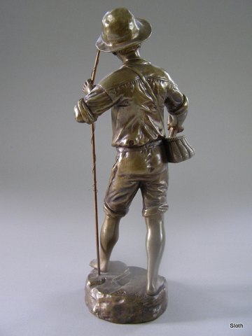 Dreng i Bronze med Fisk og Fiskestang sign G. Omerth (Georges Omerth 1895-1925 Frankrig) H: 39,5 cm.