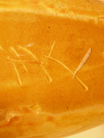 Vægvase okkergul af Hermann A. Kähler, h:20 d: 9,5 Emne nummer: 10058k
