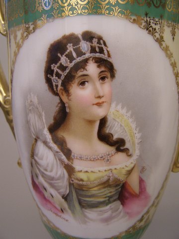 Et par prydvaser af porcelæn med motiv af Napolion og Josephine. Stemplet N , ca. 18-1900 tallet, h:42,5 Emne nummer: 10139k