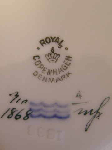 Royal Copenhagen, 1868-910 Bladformet asiet, 19x14 cm, Frijsenborg Blomstermotiv på svejfet stel med guldkant Emne nummer: 10151k
