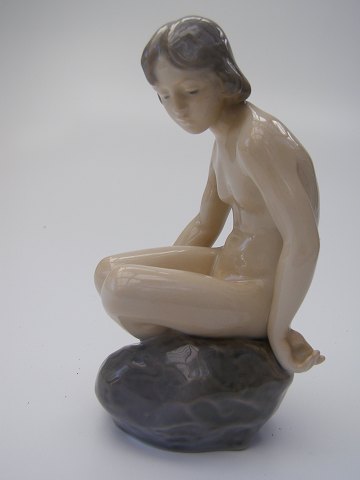 Royal Copenhagen, 4027 Nøgen pige på sten, 1. sort, h: 14,5 Emne nummer: 10209k