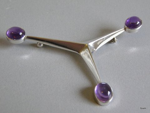 Stjerneformet Broche med Ametyst 925 S. Karl Gustav Hansen for Hans Hansen 7,3 cm*4,9 cm. Emne nummer: 16012