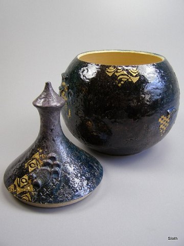 SOLGT Bjørn Wiinblad Løgformet Stentøjskrukke Signeret Bjørn Wiinblad H: 30 cm. Emne nummer: 16035