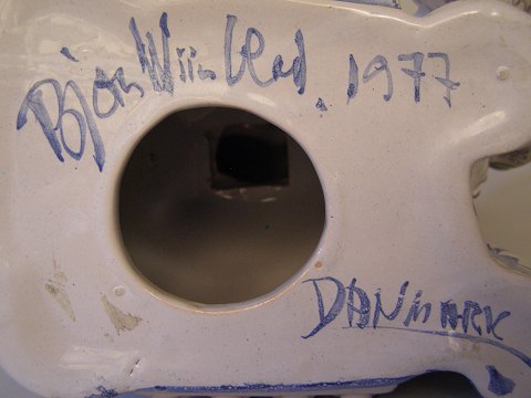 Bjørn wiinblad, 1918-2006 Unika Figurstage i form af Kong Salomons kone, Dronningen af Saba ridende på elefant, af glaseret keramik sign. Bjørn Wiinblad 1977, h:33,5 l:23 d:17
