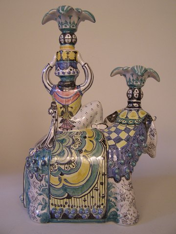 Bjørn wiinblad, 1918-2006 Unika Figurstage i form af Kong Salomon ridende på elefant, af glaseret keramik sign. Bjørn Wiinblad 1976, h:33,5 l:23 d:18