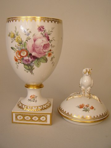Royal Copenhagen, 2656/3066 Julie Anne Marie, Lågpokal med ugle, h:28