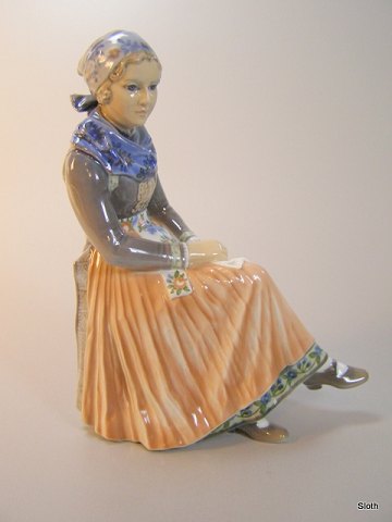 Dahl Jensen 1110 Siddende Amagerpige H: 22 cm.