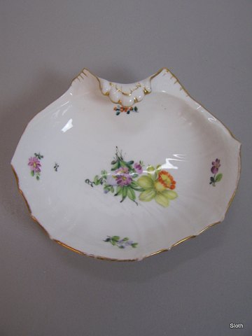 R.C. 493/1606 Let saksisk Blomst Muslingeskåle 2. Sort. før 1890 Guld lidt Slidt 17x17 cm. Emne nummer: 20078