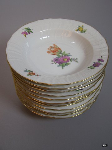 R.C. 493/1623 Let Saksisk Blomst Dyb Frokosttallerken 2. Sort. Før 1890 D: 22 cm. lidt slid på Guld Emne nummer: 20088