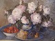 Opstilling med Pæoner og frugt sign. I. B Debois