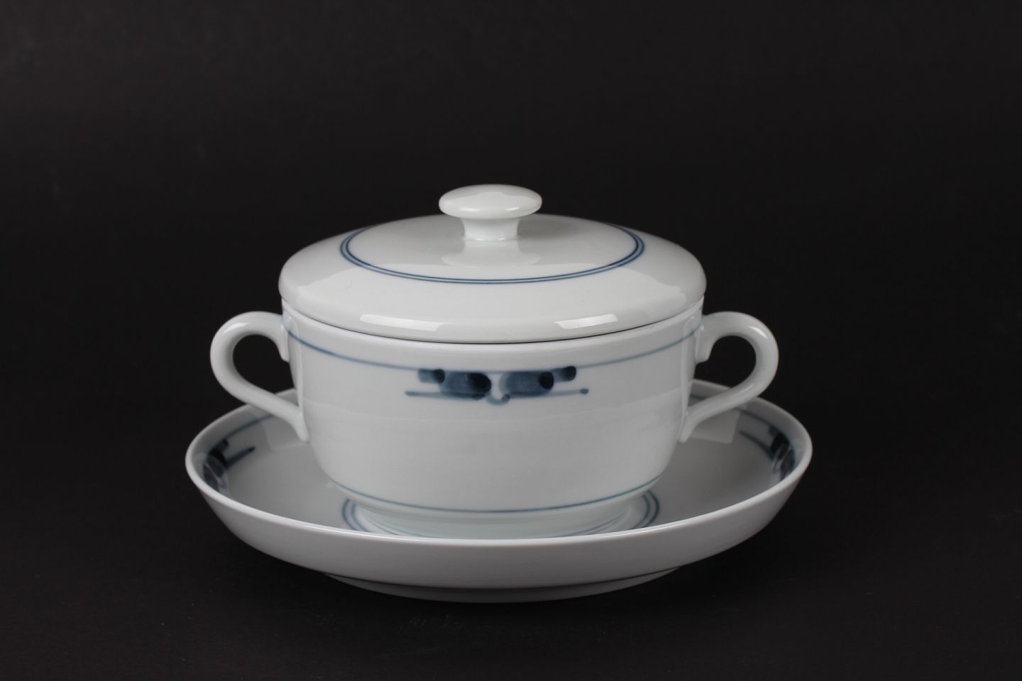 Royal Copenhagen Gemina stel Tegnet af Gertrud Vasegaard i 1959 for Royal Copenhagen - udgået af produktion i 1990'erne Bouillonkop med låg nr. 14630 Diameter 12 cm - højde 9 cm Fin fejlfri 1. sortering