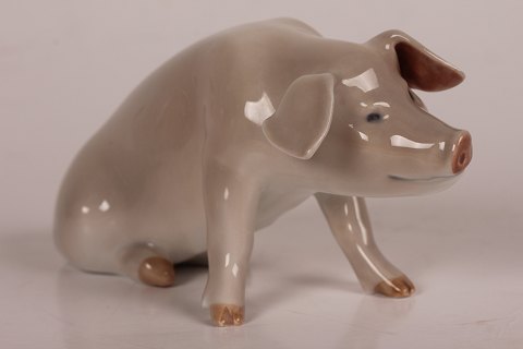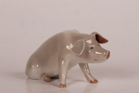 Royal Copenhagen Figurines Sitting happy pig no. 1400 Length 14 cm Height 7 cm Very nice condition no cracks or chips 1. quality