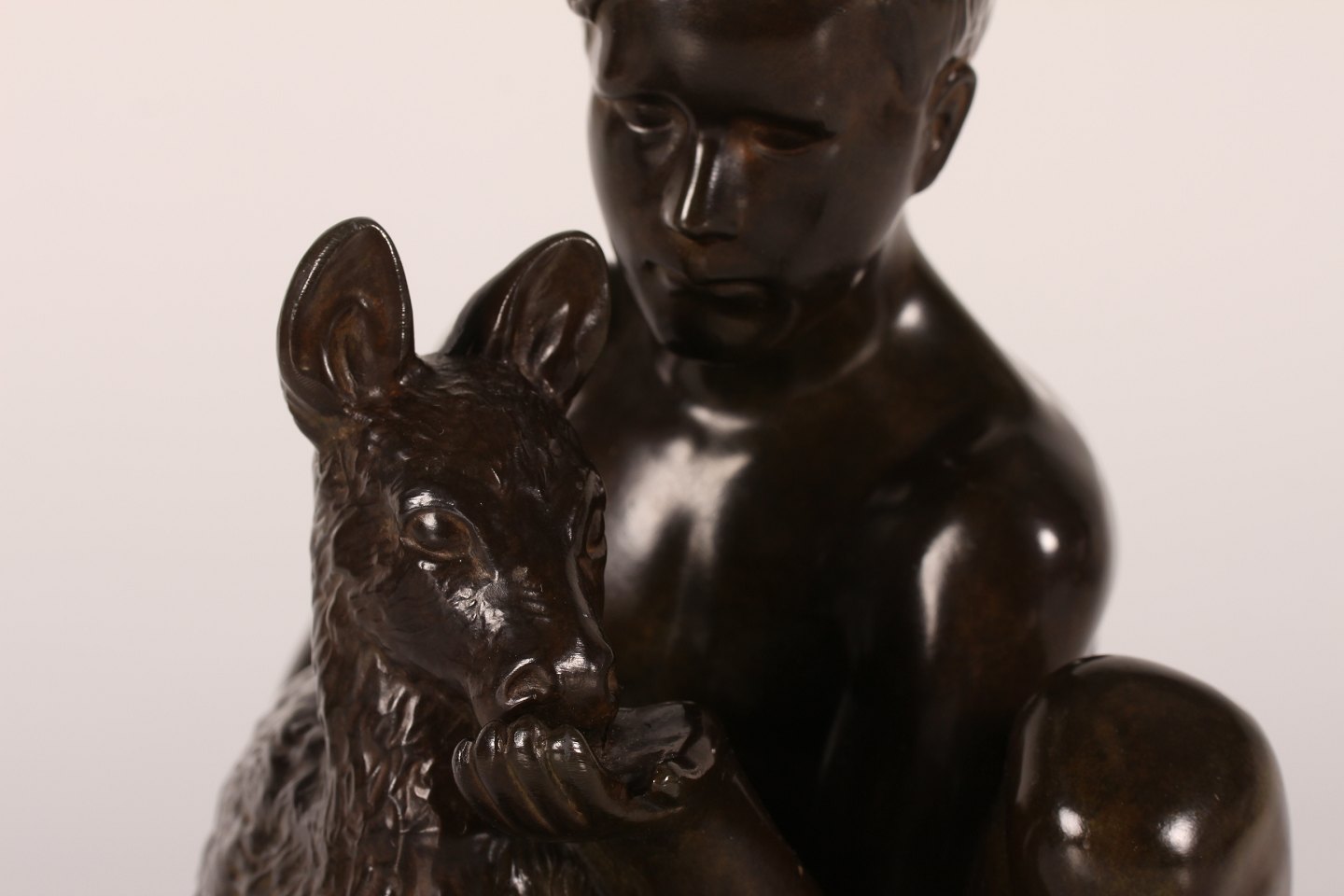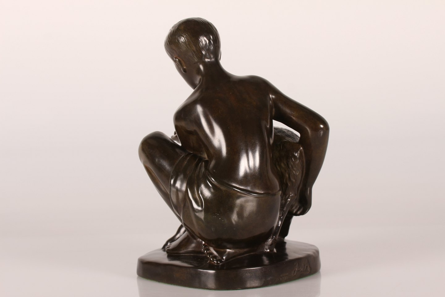 Just Andersen (1884-1943) Shapherd feed the Lamb Dessin no 2313 made of disco metal with patina Height 23 cm Very good vintage condition with beautifull patina - see image of small spot