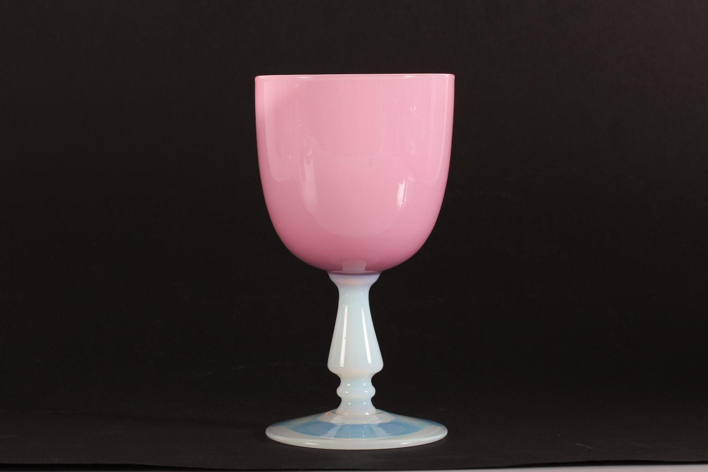 Probably Danish glass works Large old glass with rose colored bowl and stem and base of whitish glass Height 19 cm Diameter 1.,5 cm Nice vintage condition without chips or discoloration