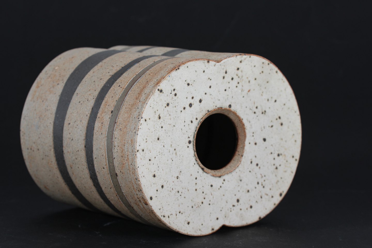 Richard Manz (1933-1999) Rustic stoneware vase unglazed with matte black/grey decoration Height 16 cm Width 18,5 cm Depth 14,5 cm Stamped Richard Manz made in Denmark Nice condition - see photo of small chip