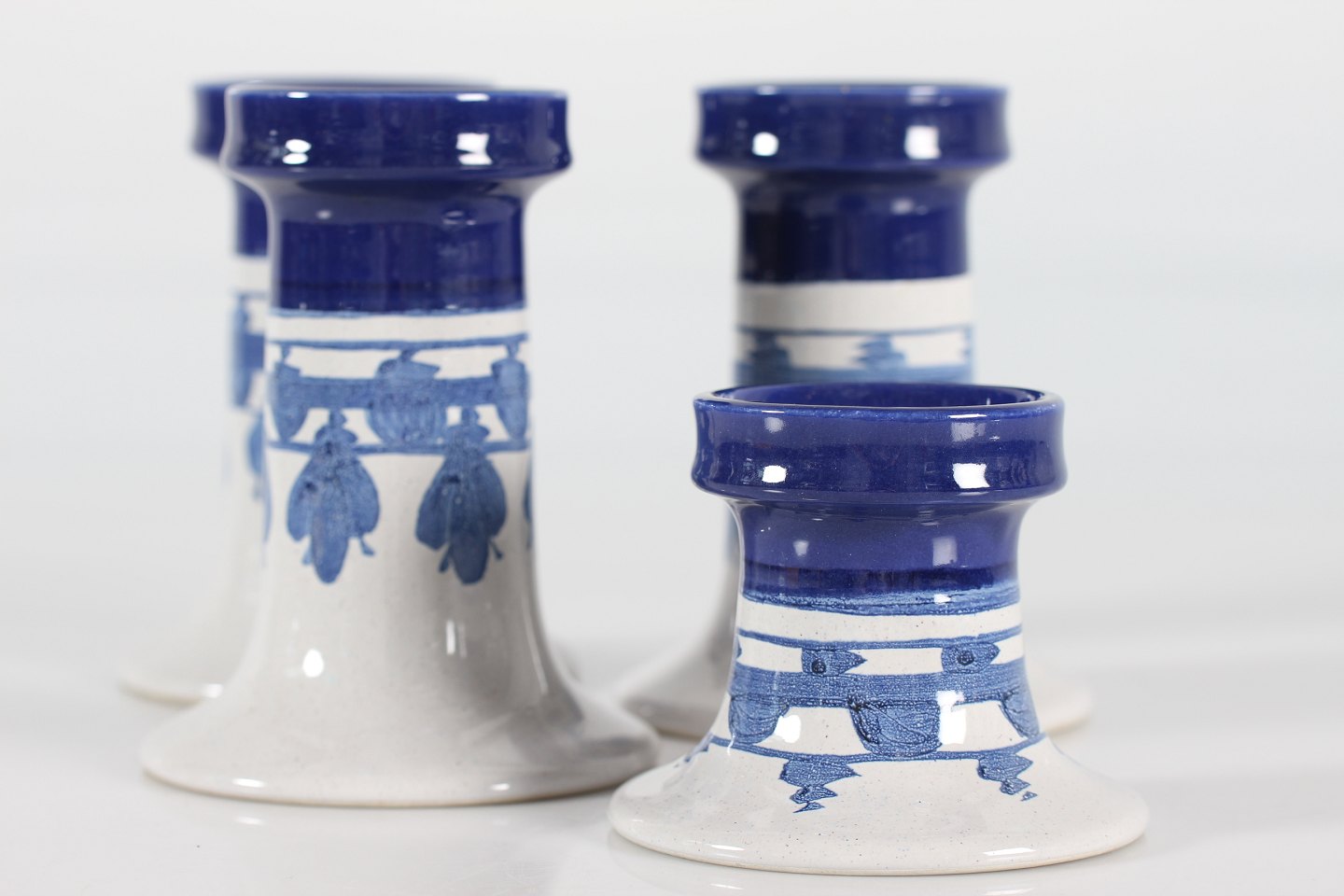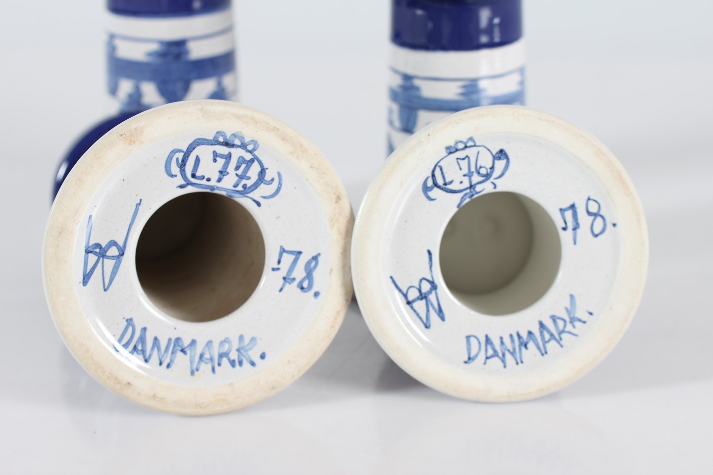Bjørn Wiinblad (1918-2006) Candlesticks decorated with white and blue glaze L 77 and L 76 from 1978 Sign : Bjørn Wiinblad Height 14/8 cm Nice vintage condition no chips, cracks or repair